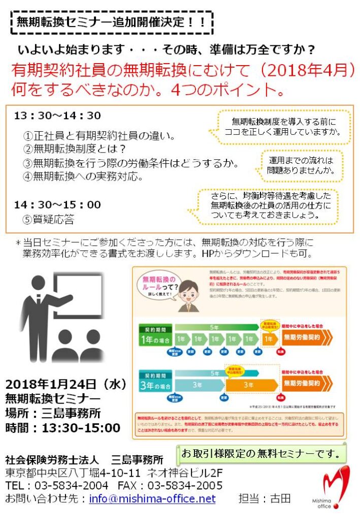 2018年1月24日に無期転換セミナーを弊社内で行います。
